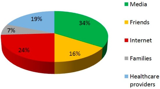 When interviewed regarding the source of information taken into consideration in order to learn more about CAM therapies, more than half (58%) of the patients surprisingly affirmed that they searched for news mostly outside the medical environment. Therefore, it was prominent that media, such as television, radio, and newspapers, were preferred as a source of information than medical advice. Figure 1 summarizes the information sources considered by CAM users.