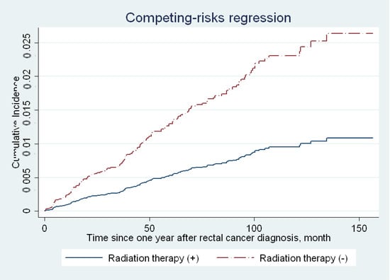 - Fine, J.P.; Gray, R.J. A proportional hazards model for the subdistribution of a competing risk. J. Am. Stat. Assoc. 1999, 94, 496–509. [Google Scholar] [CrossRef]
