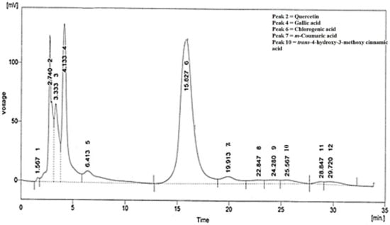 3.2. Quantitative Phytochemical Analysis by HPLC