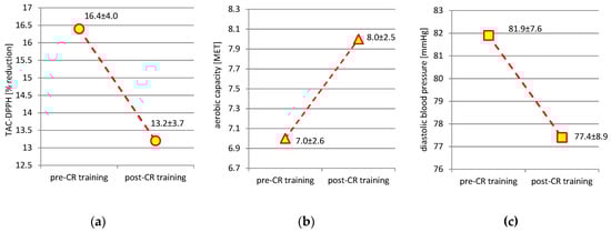 - Eleutério-Silva, M.A.; Sá da Fonseca, L.J.; Velloso, E.P.; da Silva Guedes, G.; Sampaio, W.O.; da Silva, W.F.; Mota-Gomes, M.A.; da Silva Lima, L.V.; Santos, R.A.; Rabelo, L.A. Short-term cardiovascular physical programme ameliorates arterial stiffness and decreases oxidative stress in women with metabolic syndrome. J. Rehabil. Med. 2013, 45, 572–579. [Google Scholar] [CrossRef]