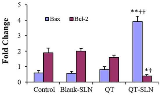 - QT-SLN: treated with 25 µmol/mL of QT-SLNs
