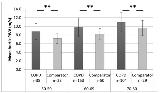 - Bhatt, S.; Cole, A.; Wells, J.; Nath, H.; Watts, J.; Cockcroft, J.; Dransfield, M. Determinants of arterial stiffness in copd. BMC Pulm. Med. 2014, 14, 1. [Google Scholar] [CrossRef] [PubMed]