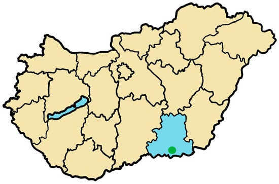 Study site in Hungary (Southern Great Plain of Hungary: in blue; Albert Szent-Györgyi Clinical Center, Szeged: in green).
