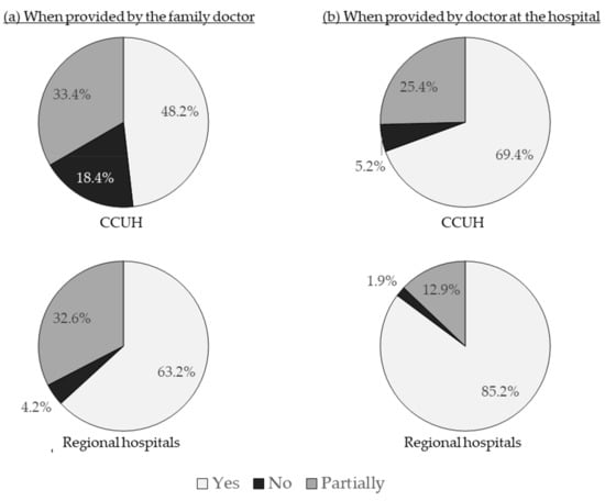 Was the explanation on the nature of illness and reasons for fever satisfactory? (a) Evaluation of the explanation provided by family doctors (applicable to 59.8% of participants in CCUH and 61.1% of participants in regional hospitals); (b) Evaluation of explanation provided by the pediatrician at the hospital (applicable to all participants).