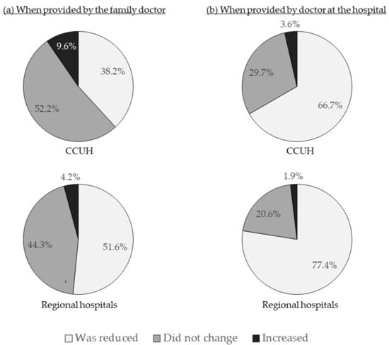 How did the information provided by the doctor affect your level of concern about the illness of your child? (a) Evaluation of assurance provided by family doctors (applicable to 59.8% of participants in CCUH and 61.1% of participants in regional hospitals); (b) Evaluation of assurance provided by the pediatrician at the hospital (applicable to all participants).