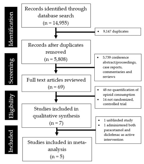 - Toms, L.; McQuay, H.J.; Derry, S.; Moore, R.A. Single dose oral paracetamol (acetaminophen) for postoperative pain in adults. Cochrane Database Syst. Rev. 2008, 4, CD004602. [Google Scholar] [CrossRef] [PubMed]