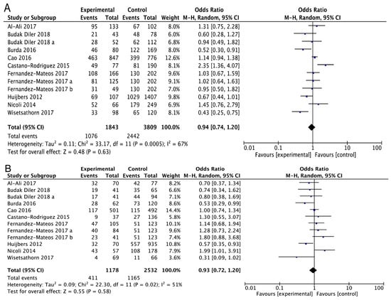 Heterogeneity among the studies was assessed by using the Q statistic and the I2 statistic. p < 0.10 was considered statistically significant. The random effects model was applied if heterogeneity was observed among studies; otherwise, the fixed effects model was used.
