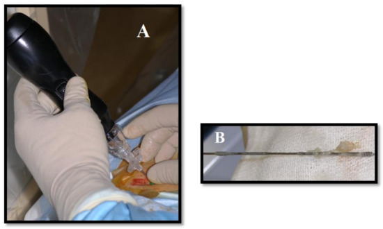 O2–O3 therapy is based on the injection of a mixture of O2 and O3 gas inside the nucleus pulposus, in order to reduce the intradiscal pressure, compression on the surrounding structures, and, consequently, associated pain. While withdrawing the needle from its intradiscal position, the gas mixture is often also administered in the soft tissues surrounding the inflamed nerve root (Figure 5) [30,31].
