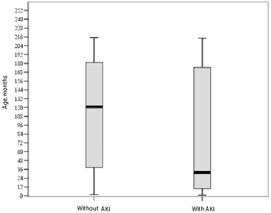 - Slater, M.B.; Gruneir, A.; Rochon, P.A.; Howard, A.W.; Koren, G.; Parshuram, C.S. Risk factors of acute kidney injury incritically ill children. Pediatr. Crit. Care Med. 2016, 17, e391–e398. [Google Scholar] [CrossRef]