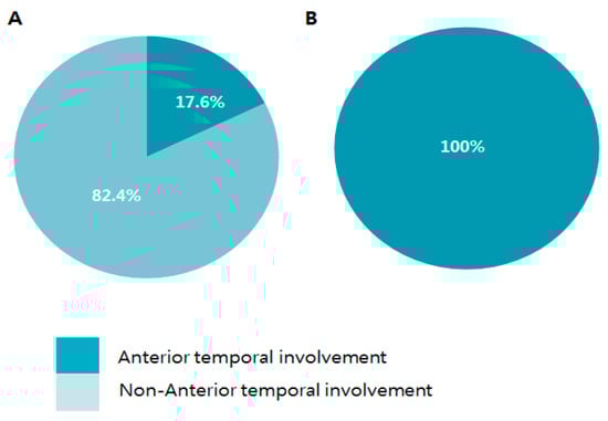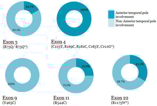 Anterior temporal pole involvement according to specific exon locations.