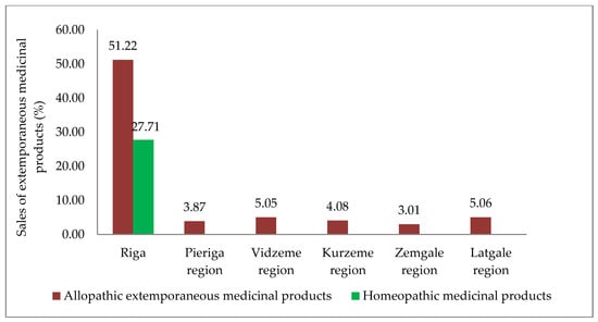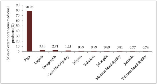 Main sales of extemporaneous medicinal products were observed in Riga, the capital of Latvia. This could be explained by data from Central Statistical Bureau of Latvia—at the beginning of 2017 the largest number of Latvian residents lived in Riga (32.9%) []. Also, the largest number of physicians was employed in Riga—62% of the total number of all Latvian physicians, in other regions significantly less (6–9%) [].