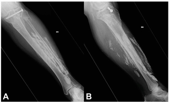 - Flinn, J.; Beggs, I. Case of the month: Calcified leg. Br. J. Radiol. 1996, 69, 371–372. [Google Scholar] [CrossRef]