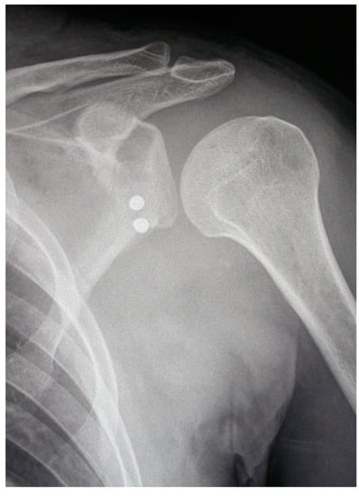 - Gupta, A.; Delaney, R.; Petkin, K.; Lafosse, L. Complications of the Latarjet procedure. Curr. Rev. Musculoskelet. Med. 2015, 8, 59–66. [Google Scholar] [CrossRef] [PubMed]