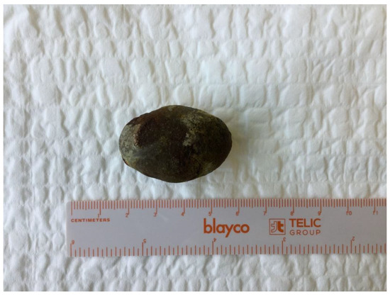 - Newman, J.H. A case of gall-stone ileus in the absence of a biliary-enteric fistula. Br. J. Surg. 1972, 59, 573–575. [Google Scholar] [CrossRef]