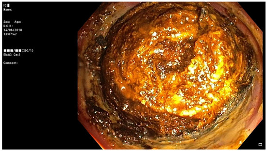 - Ferretti, C.; Fuks, D.; Wind, P.; Le Bian, A.Z. Laparoscopic management of sigmoid colon gallstone ileus. Tech. Coloproctol. 2018, 22, 605–606. [Google Scholar] [CrossRef]