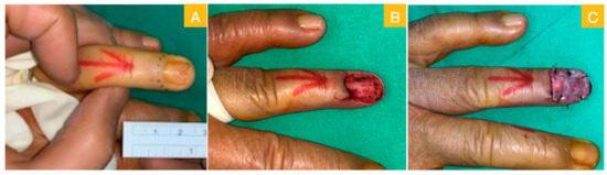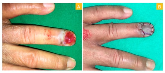 - Martin-Playa, P.; Foo, A. Approach to Fingertip Injuries. Clin. Plast. Surg. 2019, 46, 275–283. [Google Scholar] [CrossRef] [PubMed]