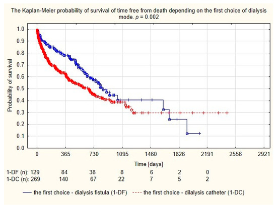 Additionally, the Kaplan–Meier survival curves were plotted for groups of patients determined on the basis of the first-time dialysis access type. Differences in the course of the curves were assessed by the log rank test. Statistical significance was determined for p < 0.05.