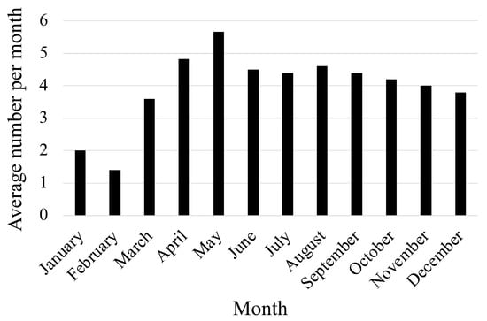 Average number of patients who ingested foreign bodies, classified by month.