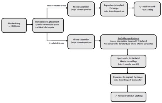 - Cordeiro, P.G.; Pusic, A.L.; Disa, J.J.; McCormick, B.; van Zee, K. Irradiation after immediate tissue expander/implant breast reconstruction: Outcomes, complications, aesthetic results, and satisfaction among 156 patients. Plast. Reconstr. Surg. 2004, 113, 877–881. [Google Scholar] [CrossRef] [PubMed]