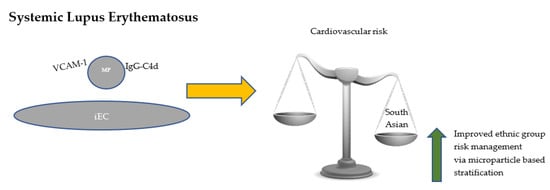 - Parker, B.; Al-Husain, A.; Pemberton, P.; Yates, A.P.; Ho, P.; Gorodkin, R.; Teh, L.S.; Alexande, M.Y.; Bruce, L.N. Suppression of inflammation reduces endothelial microparticles in active systemic lupus erythematosus. Ann. Rheum. Dis. 2014, 73, 1144–1150. [Google Scholar] [CrossRef] [PubMed]