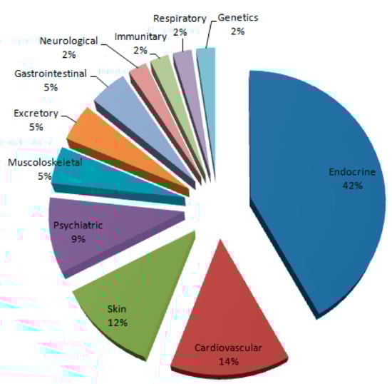 | Endocrine | 18 | (virilization, gynecomastia, hormonal disorder, cholesterol and lipid, genital and infertility issues) |