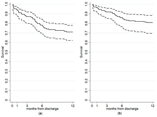 Standard descriptive statistics, including proportion (%), mean (standard deviation (SD)) or median (interquartile range (IQR)), were used. The association between candidate variables and 1-year readmission was estimated using the univariate Cox proportional hazards regression model, after checking relevant assumptions. Then, we carried out a multivariable Cox regression model, estimating the covariate-adjusted survivor function. The covariate-adjusted function focuses on the survival considering reference category values of candidate variables. We retained candidate variables that showed a p-value < 0.1 at the univariate level. A Hazard ratio (HR) with related 95% confidence interval (95% CI) was provided for any selected variable. In order to limit a possible overfitting of the model, we followed the “one-in-ten rule”, including in the final model no more than one factor for every ten events []. The significance level was set at p < 0.05. Stata statistical software package release 16 [] was used to perform the analyses.