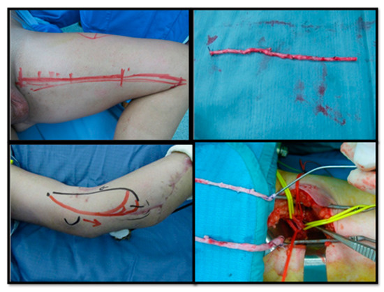 - Vlastou, C.; Earle, A.S. Short Saphenous Vein Grafts as an Aid to Microsurgical Reconstruction of the Lower Extremity. J. Reconstr. Microsurg. 1988, 4, 145–154. [Google Scholar] [CrossRef] [PubMed]