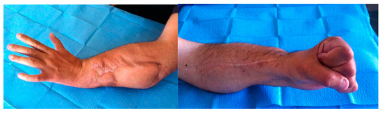 - De Francesco, F.; Marchesini, A.; Campodonico, A.; Neuendorf, A.D.; Pangrazi, P.P.; Riccio, M. A Multistep Iter for Functional Reconstruction in Mangled Upper Limb: A Retrospective Analysis of Integrated Surgical and Medical Approach. Medicina 2020, 56, 398. [Google Scholar] [CrossRef]