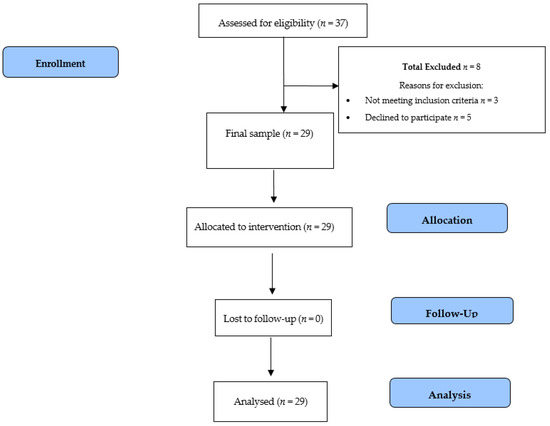 All participants initially considered suitable for participation in this program were informed of the study and asked to provide their informed consent. This study was conducted according to the regulating standards of good clinical practice and the Helsinki Declaration (2013) and approved by the Bioethics Committee of the University of Almería (UALBIO2017/007). Figure 1 displays the selection process of the study participants.