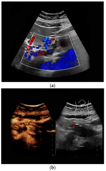 - Rafailidis, V.; Fang, C.; Yusuf, G.T.; Huang, D.Y.; Sidhu, P.S. Contrast-enhanced ultrasound (CEUS) of the abdominal vasculature. Abdom. Radiol. (NY) 2018, 43, 934–947. [Google Scholar] [CrossRef] [PubMed]