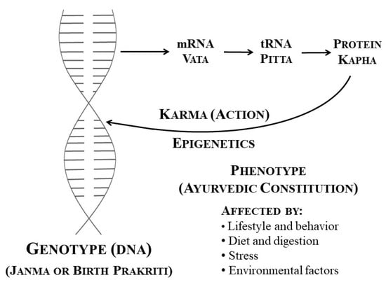 - Sharma, H. Ayurveda: Science of Life, Genetics, and Epigenetics. AYU 2016, 37, 87–91. [Google Scholar] [CrossRef]