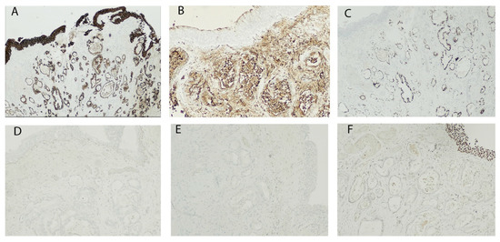 - Jiang, J.; Ulbright, T.M.; Younger, C.; Sanchez, K.; Bostwick, D.G.; Koch, M.O.; Eble, J.N.; Cheng, L. Cytokeratin 7 and cytokeratin 20 in primary urinary bladder carcinoma and matched lymph node metastasis. Arch. Pathol. Lab. Med. 2001, 125, 921–923. [Google Scholar] [CrossRef]