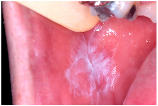 Figure 2 shows an example of the typical clinical presentation of an OLP erosive type, and Figure 3 of an OLP reticular type.