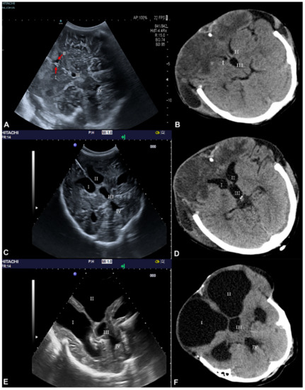 - Seidel, G.; Kaps, M.; Gerriets, T.; Hutzelmann, A. Evaluation of the ventricular system in adults by transcranial duplex sonography. J. Neuroimaging 1995, 5, 105–108. [Google Scholar] [CrossRef]