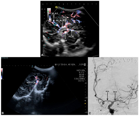- Moppett, I.K.; Mahajan, R.P. Transcranial Doppler ultrasonography in anaesthesia and intensive care. Br. J. Anaesth. 2004, 93, 710–724. [Google Scholar] [CrossRef]