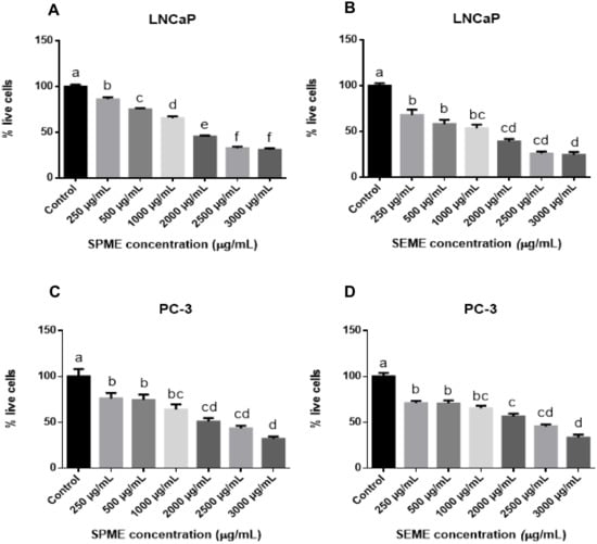 3.2. Stevia Pilosa and Stevia Eupatoria Inhibited Proliferation of Prostate Cancer Cell Lines