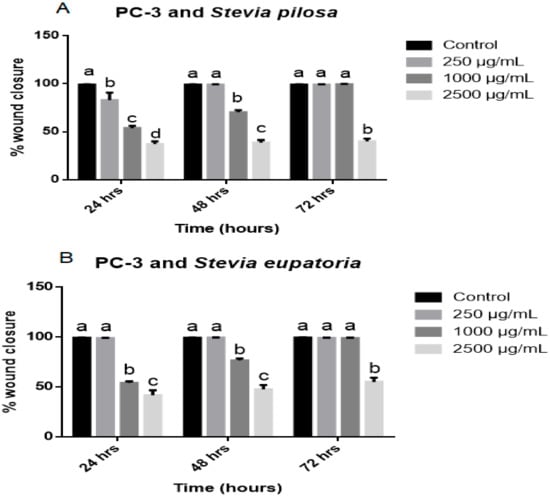 3.4. Stevia Pilosa and Stevia Eupatoria Inhibited PC-3 Cell Migration