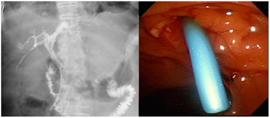 - Dowsett, J.F.; Vaira, D.; Hatfield, A.R.; Cairns, S.R.; Polydorou, A.; Frost, R.; Croker, J.; Cotton, P.B.; Russell, R.C.; Mason, R.R. Endoscopic biliary therapy using the combined percutaneous and endoscopic technique. Gastroenterology 1989, 96, 1180–1186. [Google Scholar] [CrossRef]