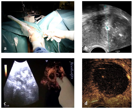 Given that the RF ablation of solid tumors of the liver and other organs is successfully used as a standard approach [12,13,14], we decided to transfer this technology to the treatment of uterine fibroids. Indeed, in order to achieve the optimization of radiofrequency myolysis, we improved the procedure by inserting three innovative elements: (1) application of a virtual needle tracking system to follow the RF electrode during the ablation session [15,16], (2) real-time monitoring of RF ablation by contrast-enhanced ultrasound [17,18] and (3) systematic biopsy of the lesions before electro-coagulation [19].