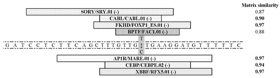 Substitution for rare allele C potentially assists in creation of binding sites (BSs) in proteins of the AP1R, CEBP, and XBBF families, but Major allele T assists to sequence the creation of BSs to TFs of SORY, CABL, FKHD and BPTF families (Figure 1).