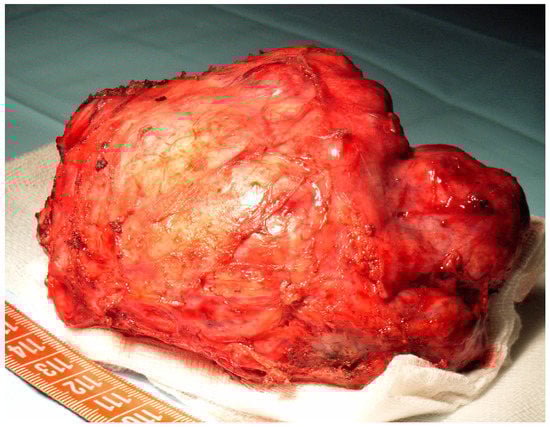 Pleural solitary fibrous tumors (PSFTs) are rare tumors, and their evolution is considered unpredictable. The incidence of this disease is considered to be lower than 5% of the total number of pleural tumors []. The first case of PSFT was described from a histological view by Wagner in 1870 [], however, the first pleural tumor was presented by Lieutaud in 1767 [,]. In 1931, Klemperer and Rabin published a histopathological description and divided the tumors in two categories: diffuse and localised []. Stout and Murray (1942) were the first to identify the mesenchymal origin of pleural tumors, which was later confirmed by electronic microscopy and immunohistochemistry []. Over time, these tumors have had different names: localised mesothelioma, benign mesothelioma, fibrous mesothelioma, pleural fibroma, benign pleural fibroma, pleural fibromyxoma, localised fibrous tumor, and so on [].