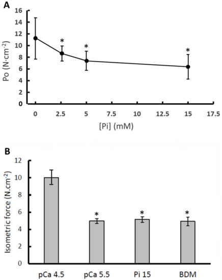 - Nocella, M.; Cecchi, G.; Colombini, B. Phosphate increase during fatigue affects crossbridge kinetics in intact mouse muscle at physiological temperature. J. Physiol. 2017, 595, 4317–4328. [Google Scholar] [CrossRef] [PubMed]
