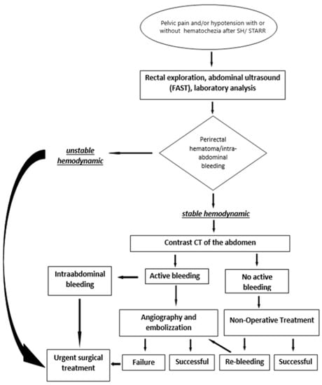 Algorithm for Management of perirectal hematomas and intra-abdominal bleeding after SH and STARR.