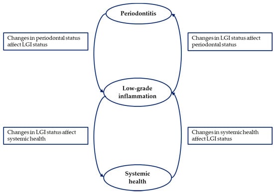 The synthesis of available data emerging from this scoping review confirms the strict connection existing between periodontitis, LGI and systemic health (Figure 2).