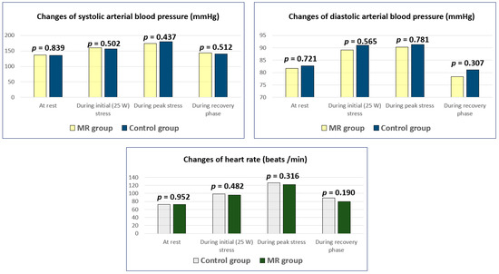Changes of heart rate and arterial blood pressure during stress in MR and control groups. MR—Mitral regurgitation