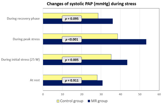 Changes of systolic PAP during stress. MR—mitral regurgitation; PAP—pulmonary artery pressure.