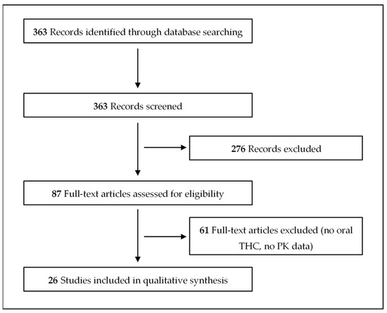 Poyatos, L.; Pérez-Acevedo, A.P.; Papaseit, E.; Pérez-Mañá, C.; Martin, S.; Hladun, O.; Siles, A.; Torrens, M.; Busardo, F.P.; Farré, M. Oral Administration of Cannabis and Δ-9-tetrahydrocannabinol (THC) Preparations: A Systematic Review. Medicina 2020, 56, 309. https://doi.org/10.3390/medicina56060309