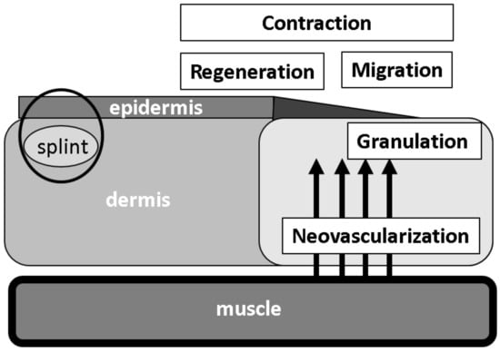 - Jimi, S.; De Francesco, F.; Ferraro, G.A.; Riccio, M.; Hara, S. A Novel Skin Splint for Accurately Mapping Dermal Remodeling and Epithelialization During Wound Healing. J. Cell Physiol. 2017, 232, 1225–1232. [Google Scholar] [CrossRef] [PubMed]