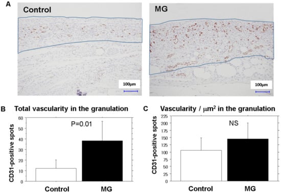 | Granulation area (×103 µm) | 109.9 ± 34.8 | 260.9 ± 64.0 | 0.0005 |