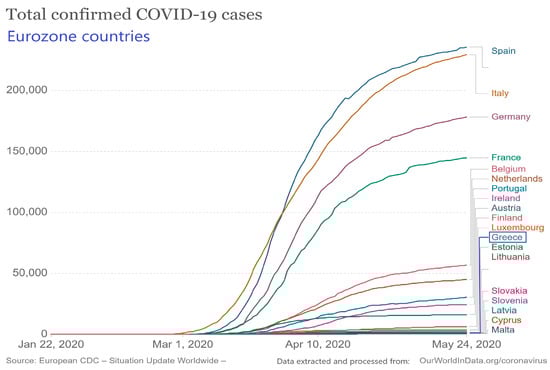 - European Centre for Disease Prevention and Control. “COVID-19 Situation Update for the EU/EEA”. Available online: https://www.ecdc.europa.eu/en/cases-2019-ncov-eueea (accessed on 24 May 2020).
